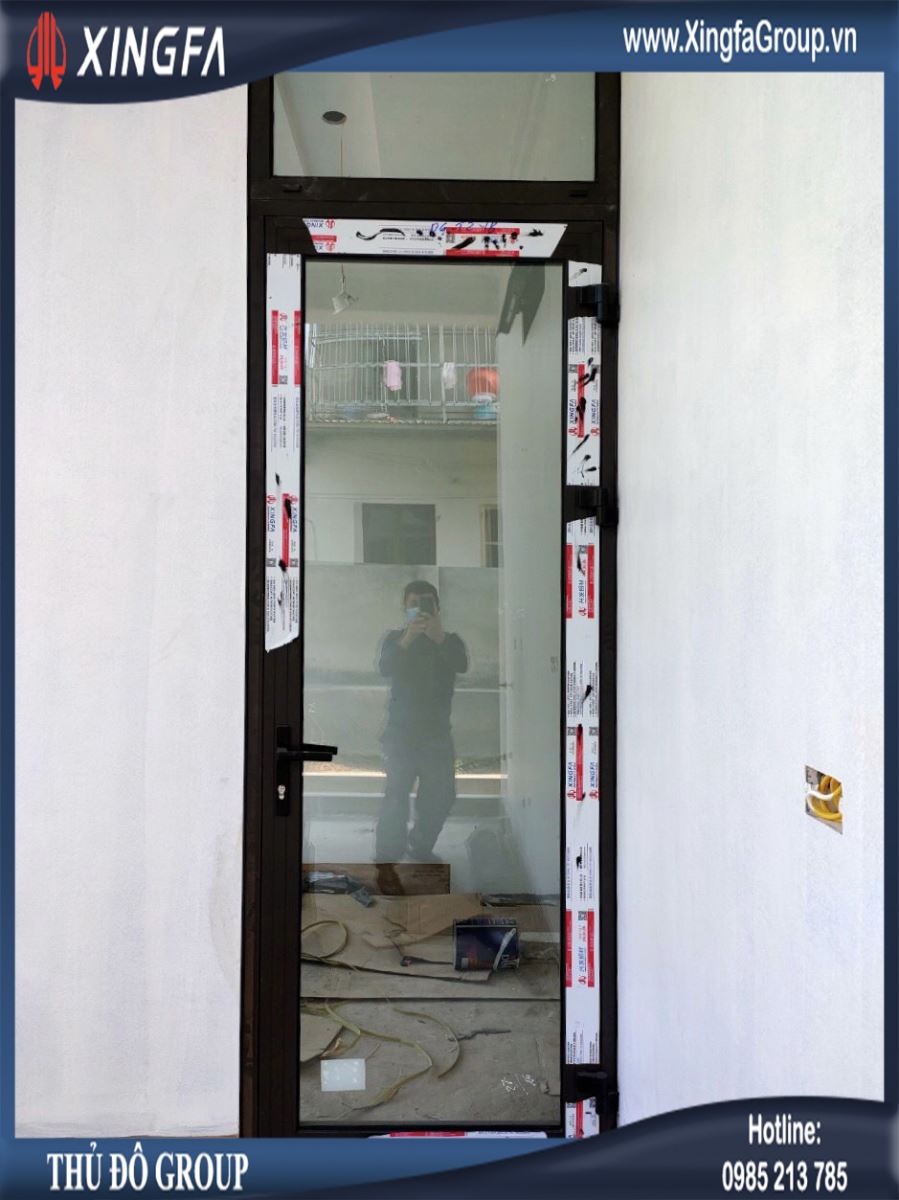 Hình ảnh một bộ cửa đi mở quay 1 cánh nhôm Xingfa chính hãng