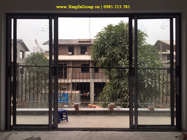Mẫu cửa đi mở trượt lùa 2 cánh sang 2 bên nhôm Xingfa tem xanh nhập khẩu