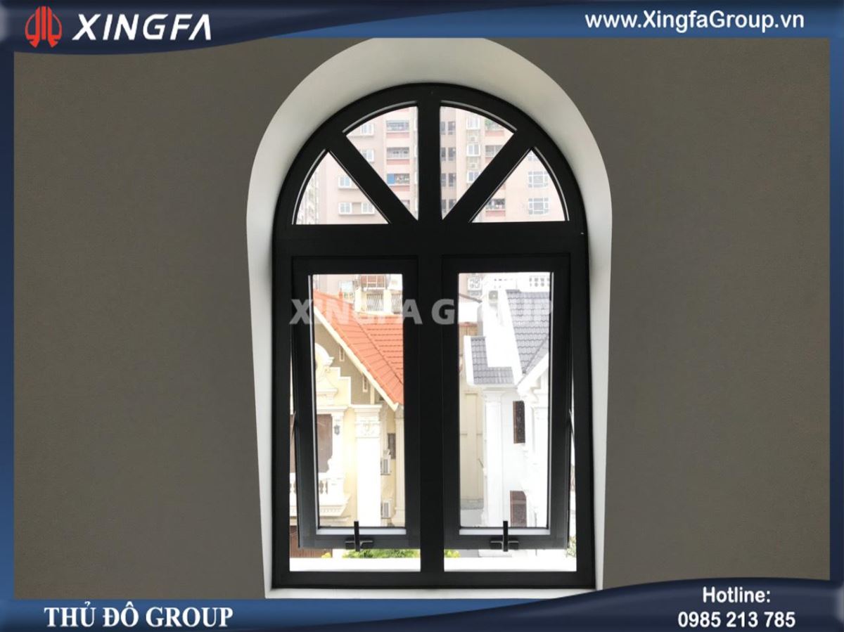 Mẫu cửa sổ mở hất 2 cánh nhôm Xingfa uốn mái vòm cong