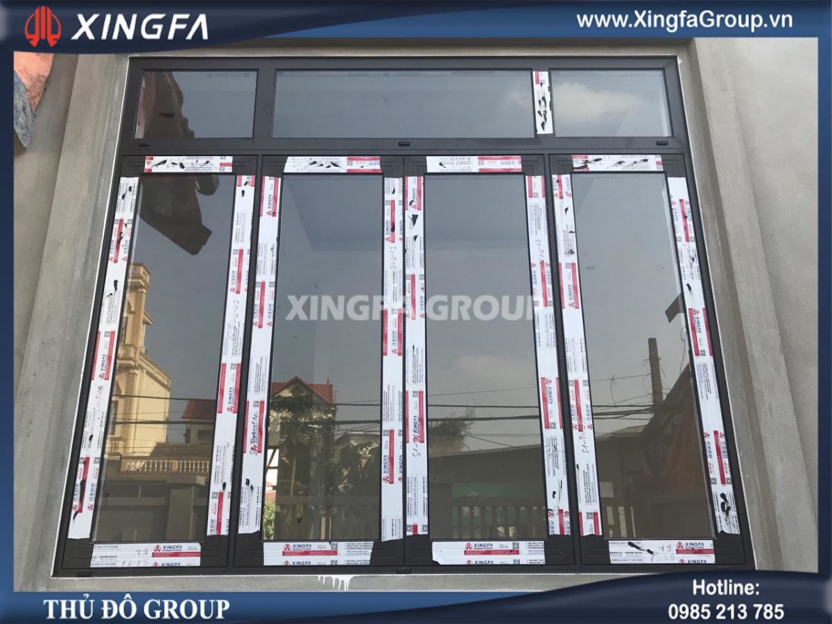 Mẫu cửa sổ mở quay 4 cánh + fix cố định nhôm Xingfa nhập khẩu tem đỏ chính hãng Quảng Đông