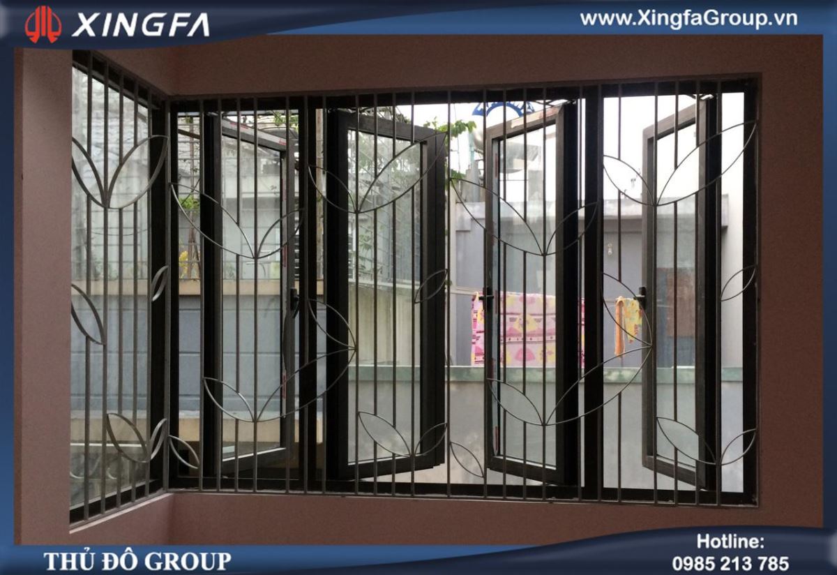 Mẫu cửa sổ mở quay 4 cánh nhôm Xingfa sử dụng song hoa sắt bên trong đảm bảo độ an toàn