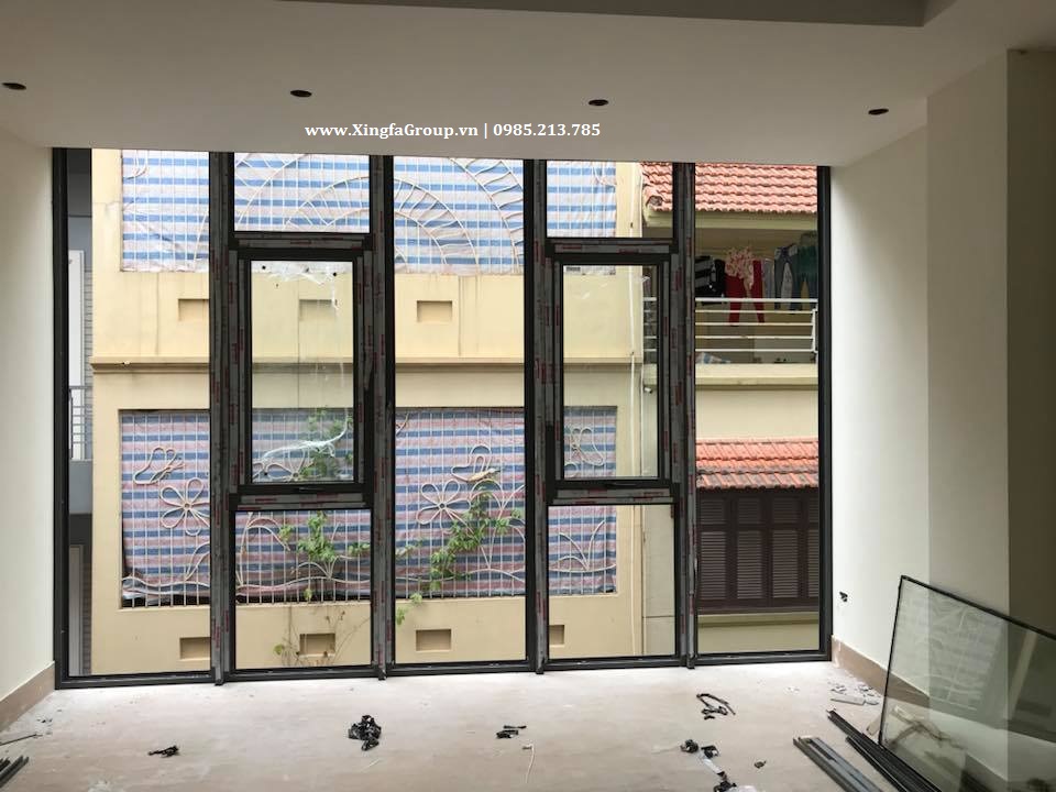 Mẫu cửa nhôm Xingfa đang thi công lắp đặt hoàn thiện