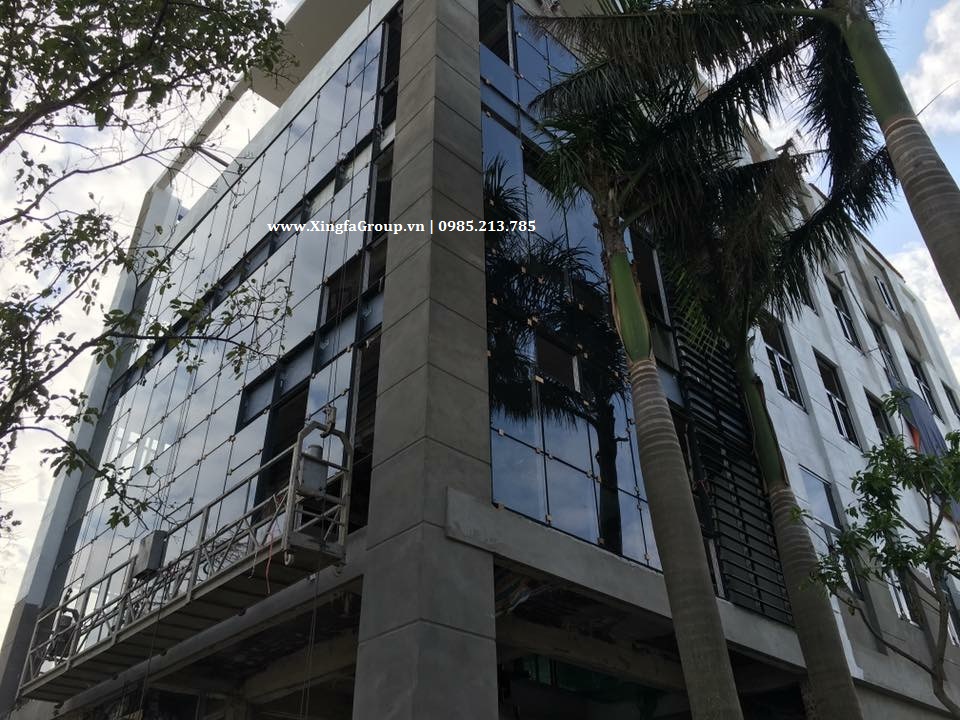 Thi công vách mặt dựng nhôm Xingfa giấu đố tại 12 Nguyễn Khánh Toàn, Cầu Giấy, Hà Nội