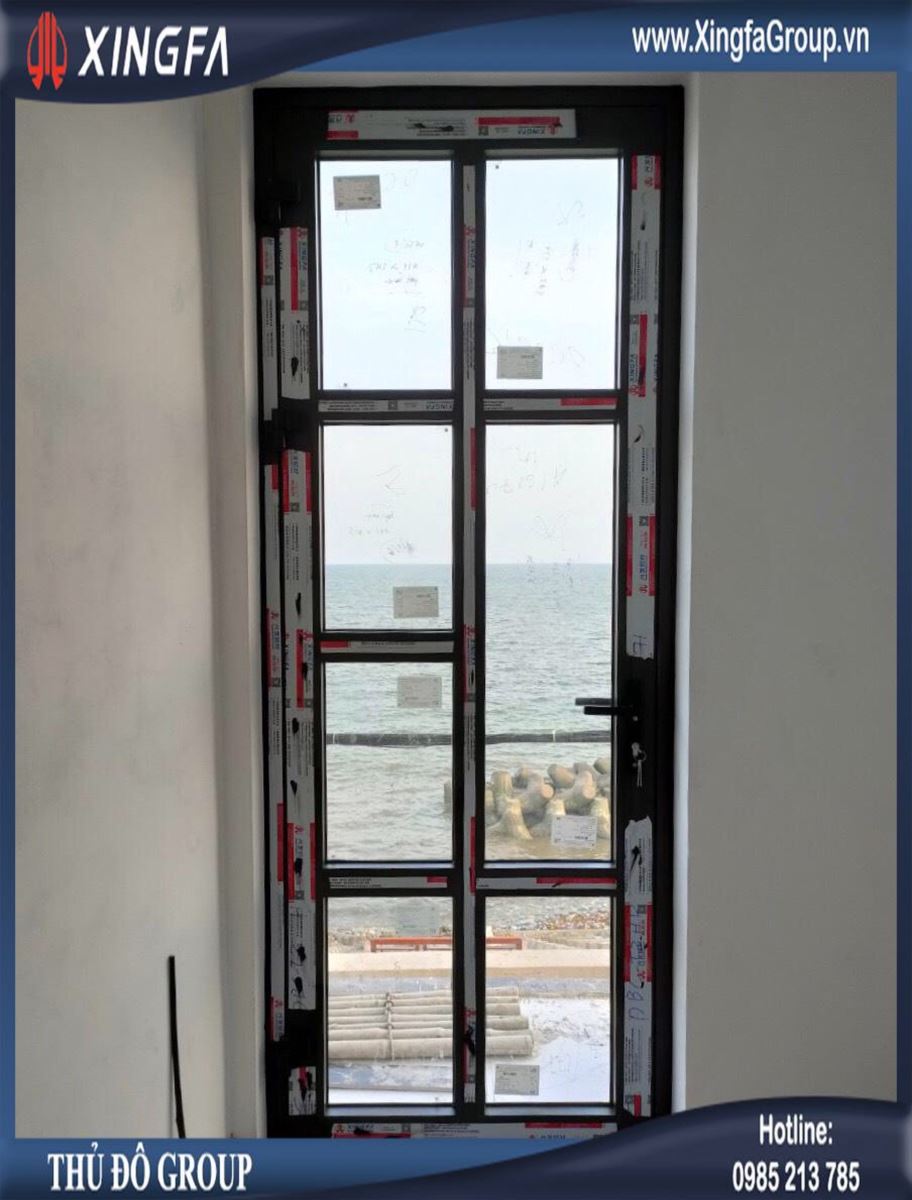 Mẫu cửa đi nhôm Xingfa mở quay 1 cánh chia thêm nhiều đố cửa vững chắc an toàn hơn