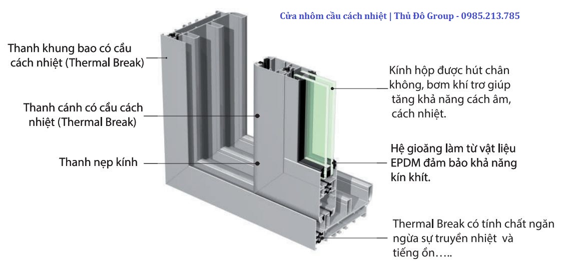 Cấu tạo cửa nhôm có cầu cách âm cách nhiệt