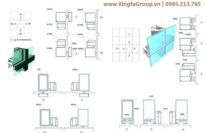 Bản vẽ chi tiết vách mặt dựng nhôm Xingfa giấu đố hệ 65