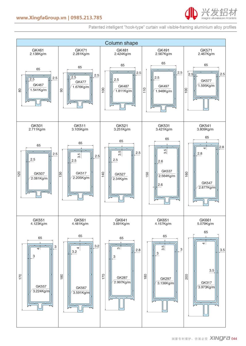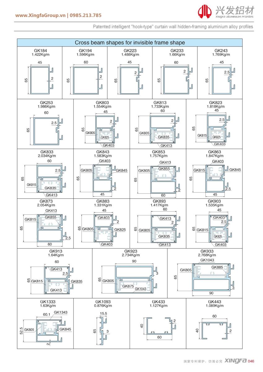 Bản vẽ mặt cắt nhôm Xingfa hệ 65: