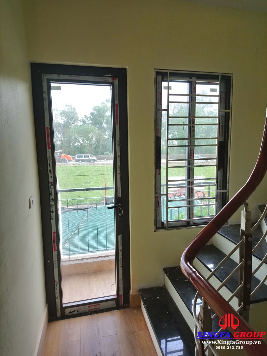 Cửa đi mở quay và cửa sổ mở trượt ra ban công tầng 2