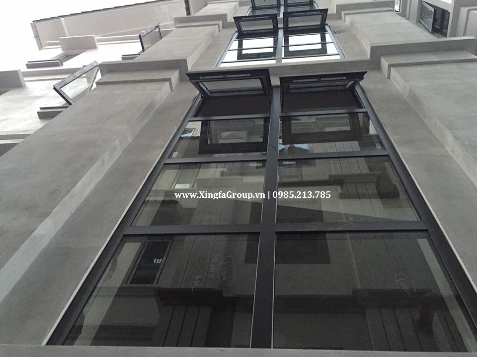 Hệ thống vách cầu thang sử dụng nhom Xingfa nhap khau với thiết kế kiểu mở hất ra ngoài