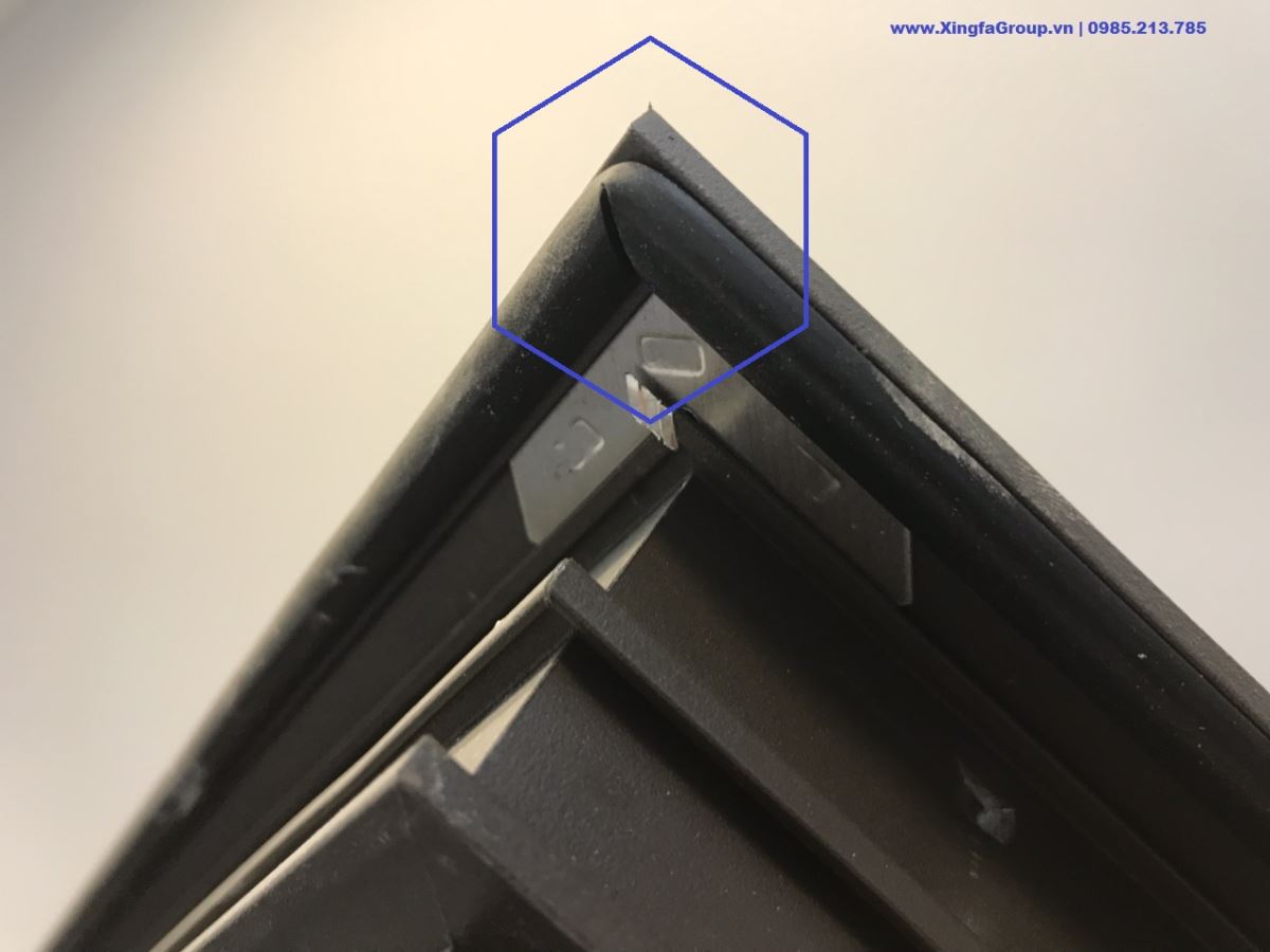 - ✓5. Sử dụng keo ép góc PU88 đặc chủng cao cấp nhập khẩu (Mỹ), đóng rắn kín khít bền bỉ tuyệt đối liên kết ke ép góc giữa thanh profile nhôm Xingfa và ke nhôm Anot.