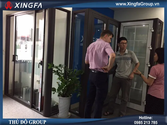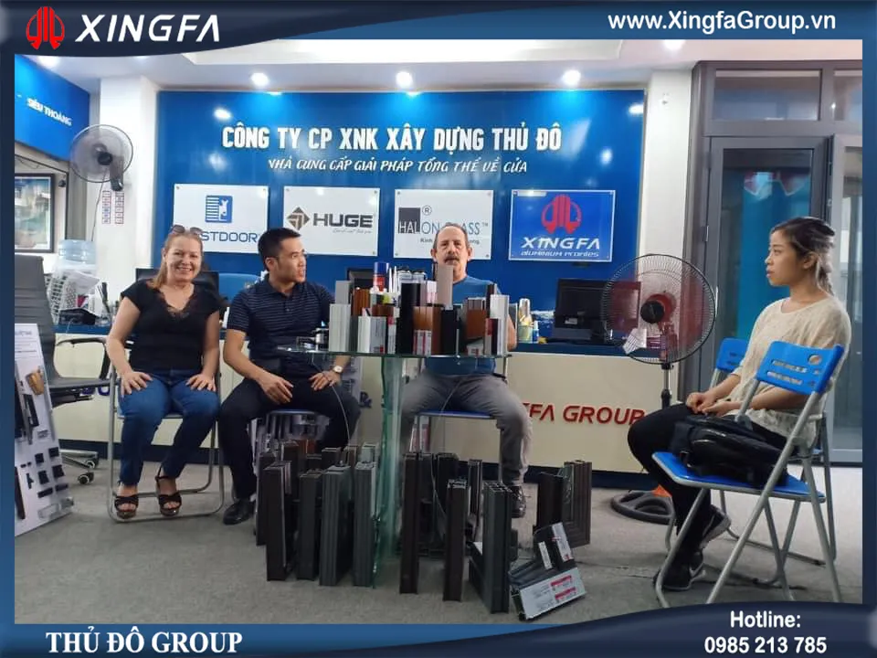 Hình ảnh: Quý khách hàng đến thăm quan sản phẩm cửa nhôm Xingfa nhập khẩu chính hãng 100%, cửa cuốn Austdoor chính hãng, cửa gỗ Huge cao cấp chịu nước tuyệt đối tại showroom Thủ Đô Group