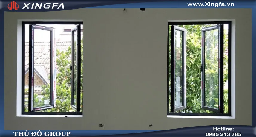 Hình ảnh cửa sổ mở quay 2 cánh nhôm Xingfa nhập khẩu chính hãng