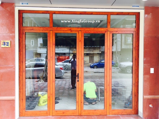 Mẫu thiết kế cửa đi mở quay 4 cánh nhôm Zhongkai mầu vân gỗ