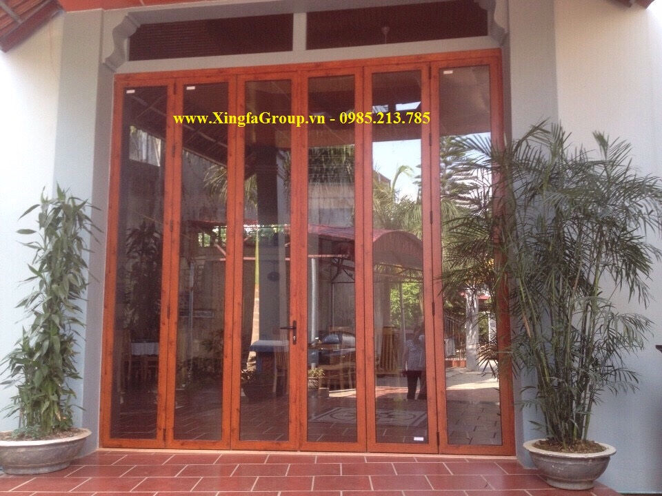 Mẫu thiết kế cửa đi mở xếp trượt gấp 6 cánh nhôm Zhongkai nhập khẩu mầu vân gỗ