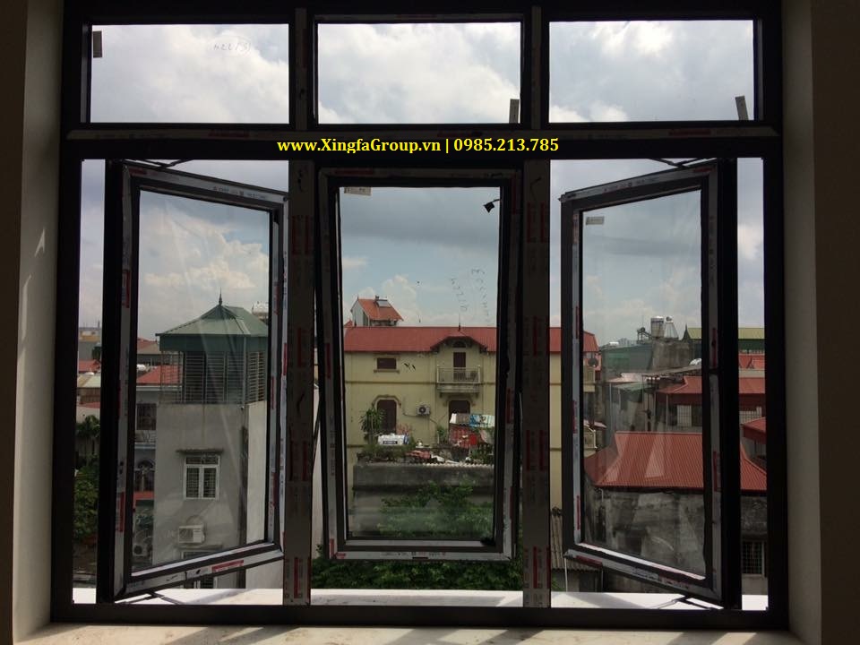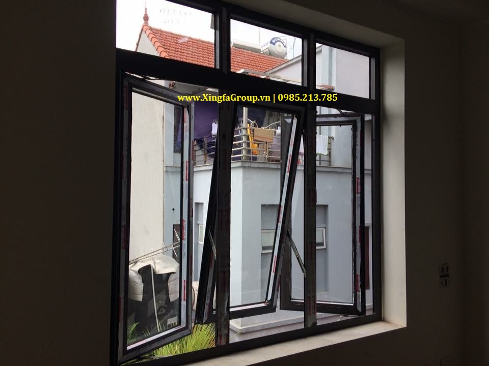 Ứng dụng thực tế cua nhom Xingfa vào mẫu thiết kế cửa sổ mở hất ở giữa kết hợp mở quay 2 cánh 2 bên cho hệ cửa sổ các công trình xây dựng cơ bản