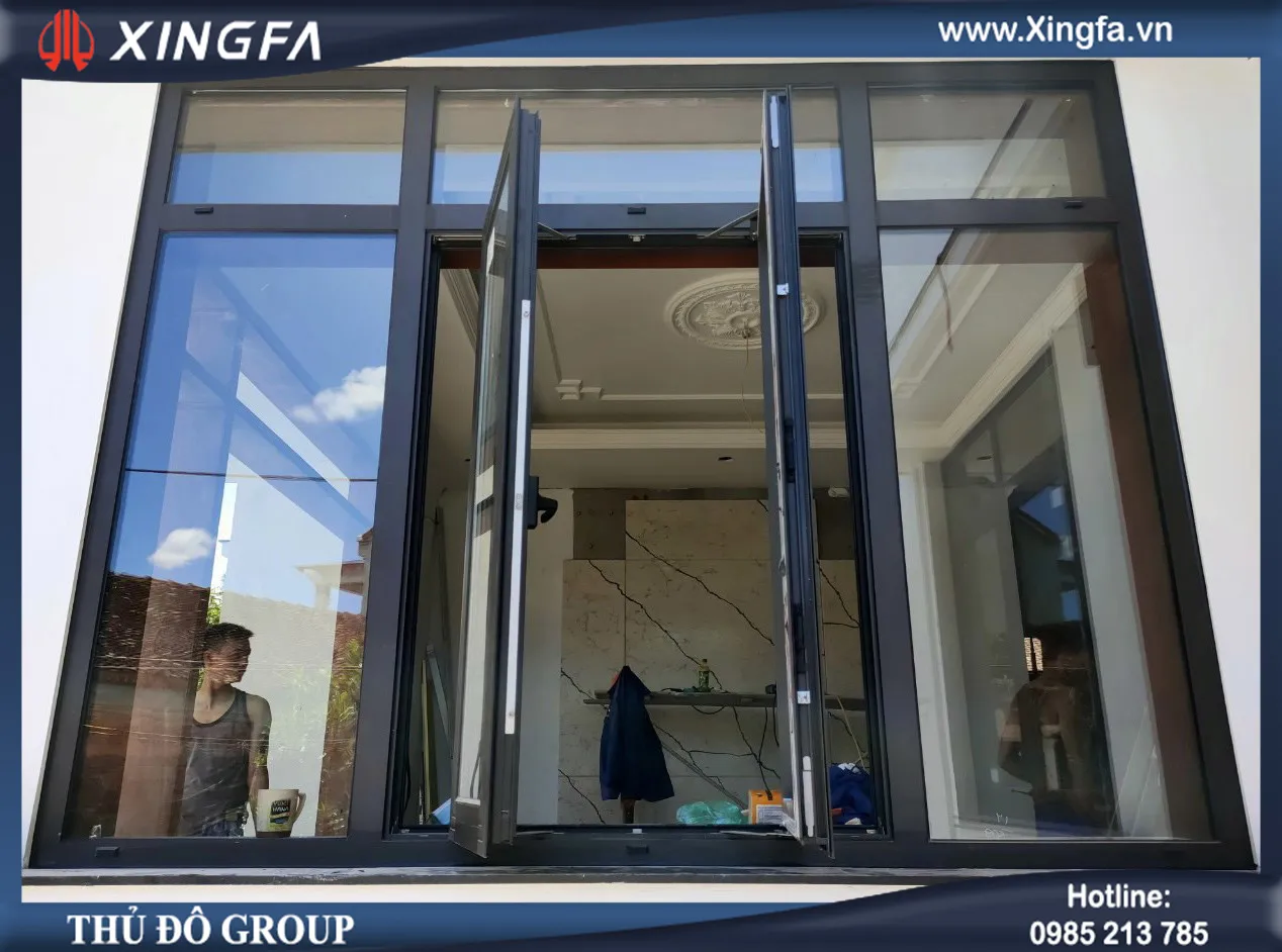 Hình ảnh cửa sổ mở quay 2 cánh nhôm Xingfa hệ 55