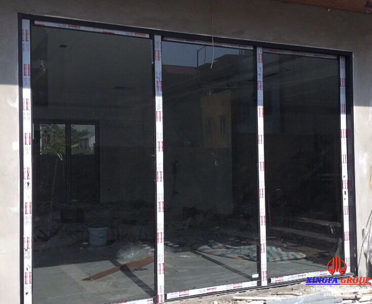 Cửa đi mở trượt nhôm Xingfa 3 cánh nằm trên 3 ray độc lập