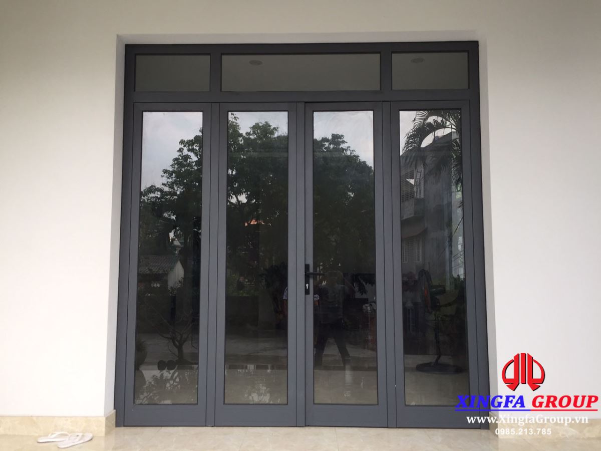Cửa đi mở quay 4 cánh nhôm Xingfa màu ghi