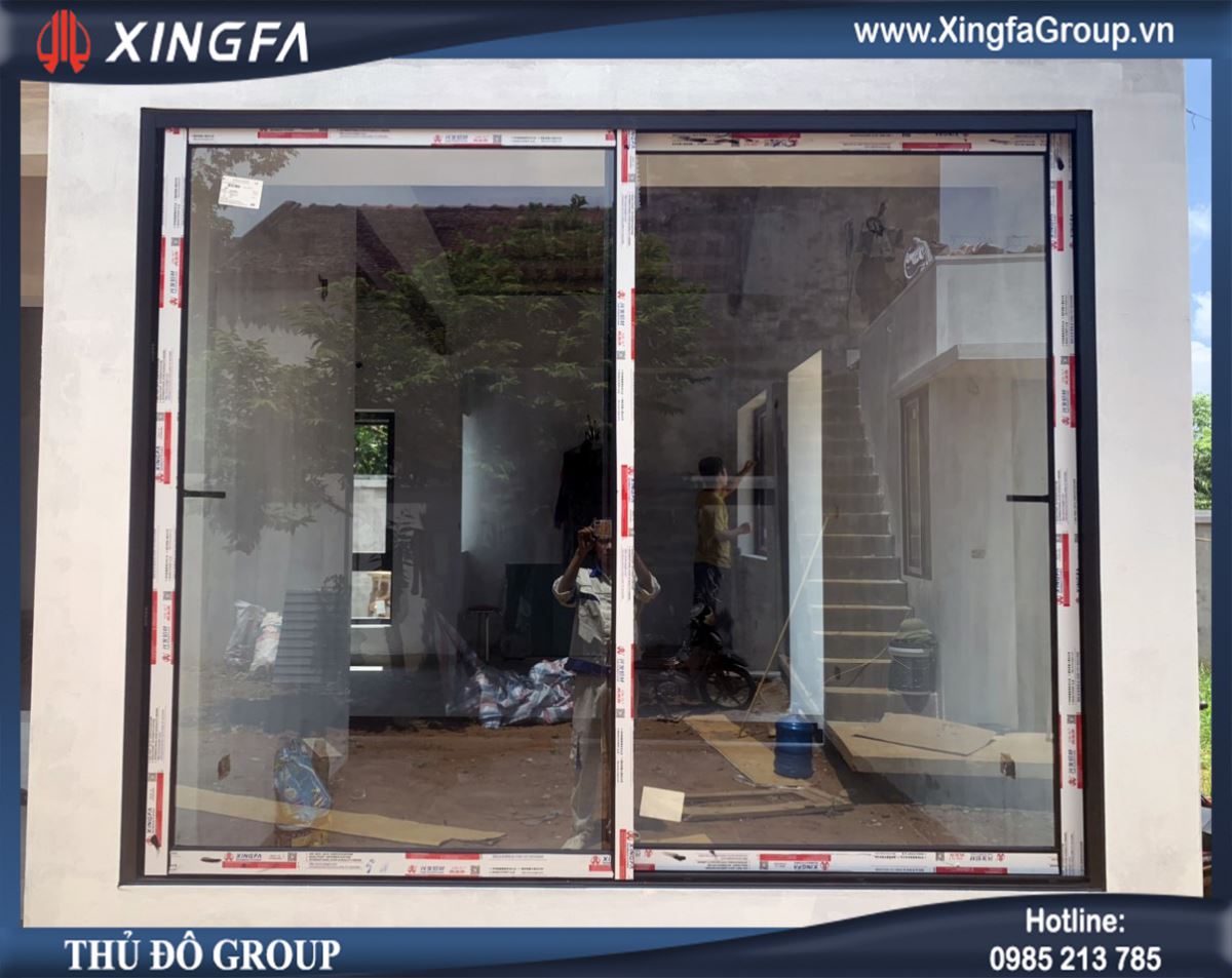 Hình ảnh một bộ cửa sổ mở trượt 2 cánh nhôm Xingfa chính hãng