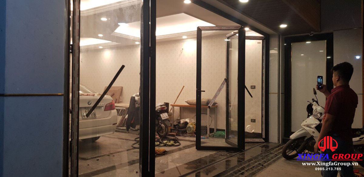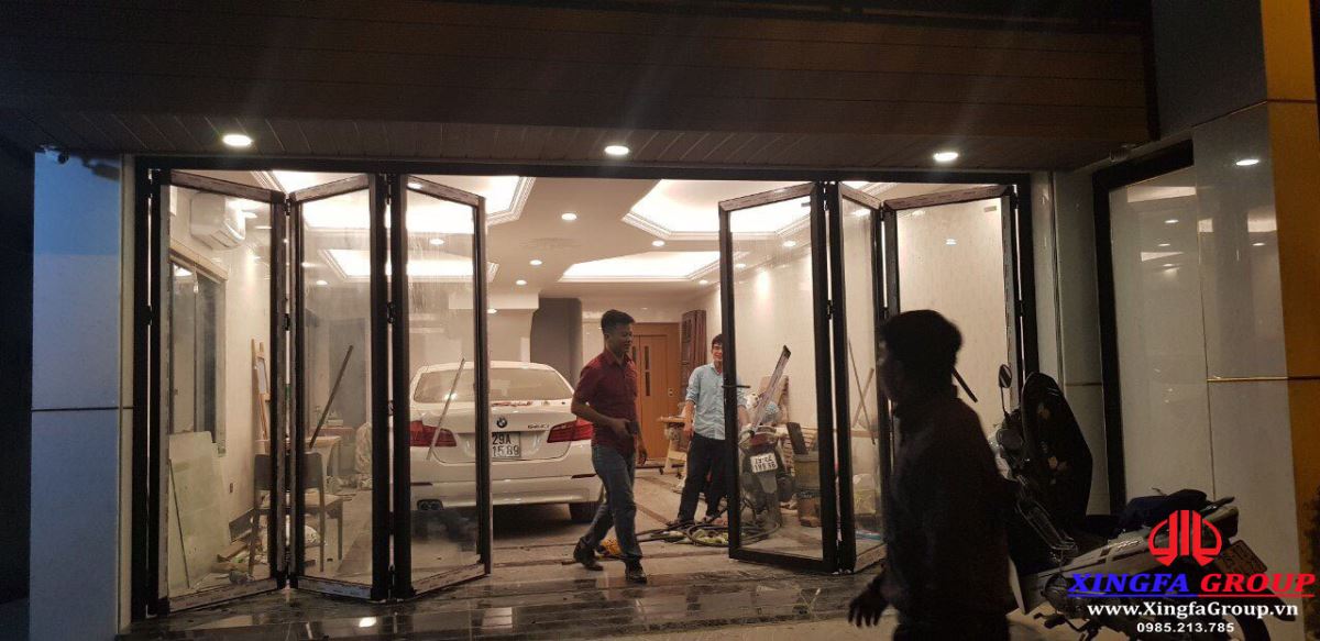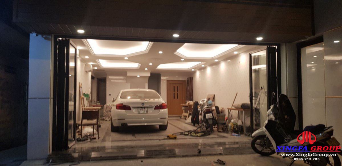 Xingfa Group giới thiệu hình ảnh bộ cửa nhôm Xingfa hệ xếp trượt gấp được lắp đặt tại công trình nhà anh Tuấn Anh ở huyện Đông Anh, Hà Nội. Anh Tuấn Anh đã lựa chọn loại cửa này để lắp đặt tại tầng trệt để xe tại nhà mình. Cửa có khả năng mở hết sang 2 bên tạo không gian khá rộng rãi.