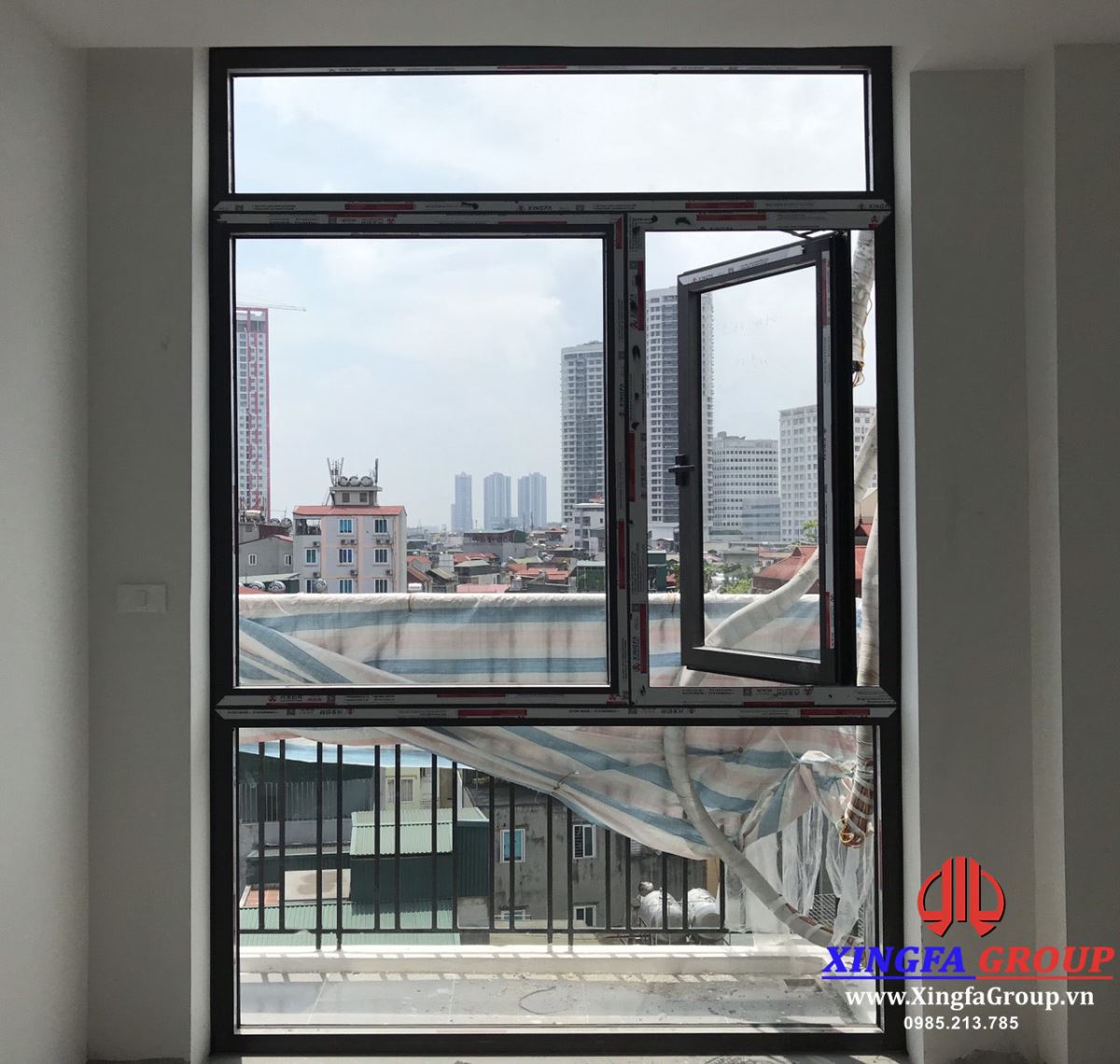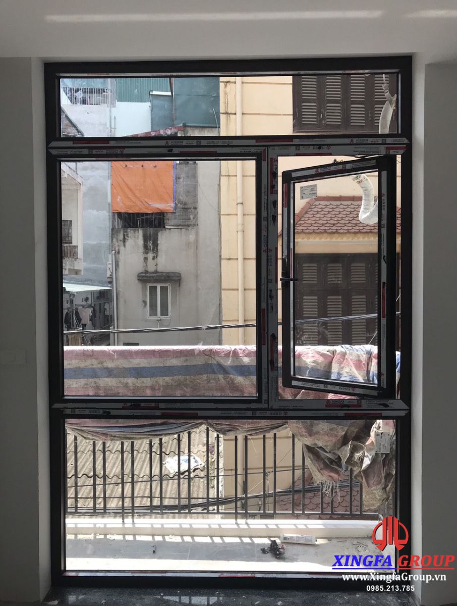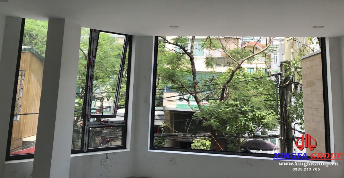 Vách kính kết hợp với cửa sổ mở quay sử dụng nhôm Xingfa hệ 55