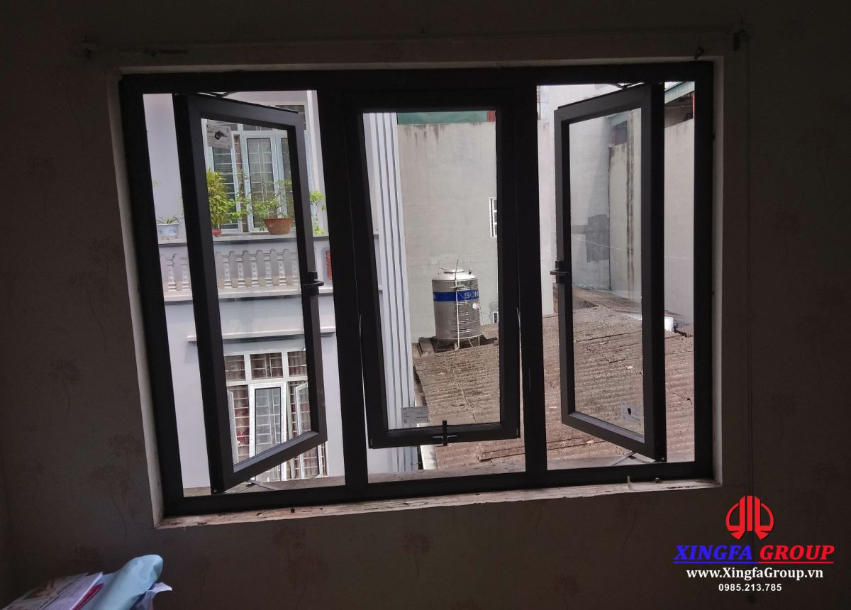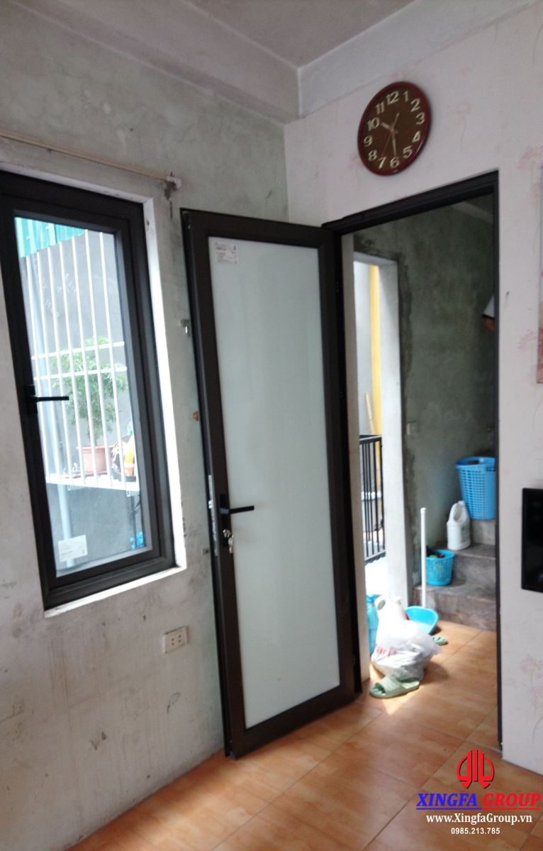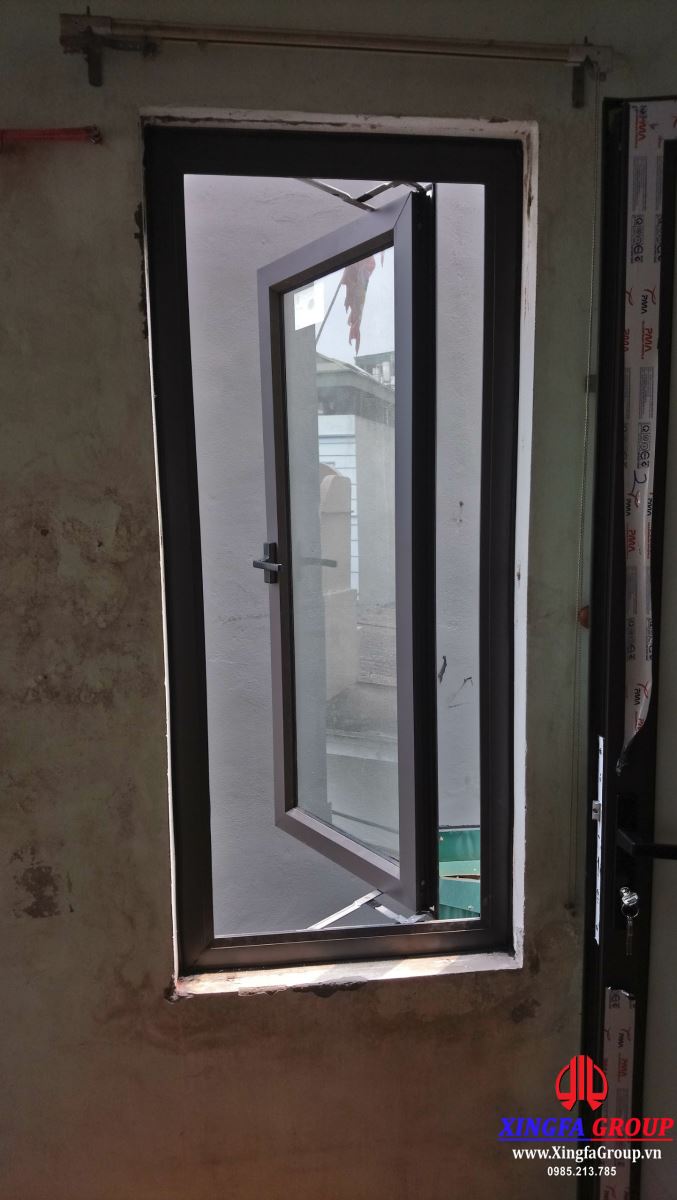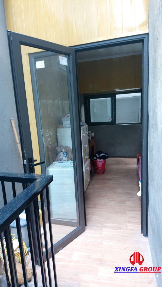 Cửa mở quay 1 cánh nhôm Xingfa ra sân trên tầng 4
