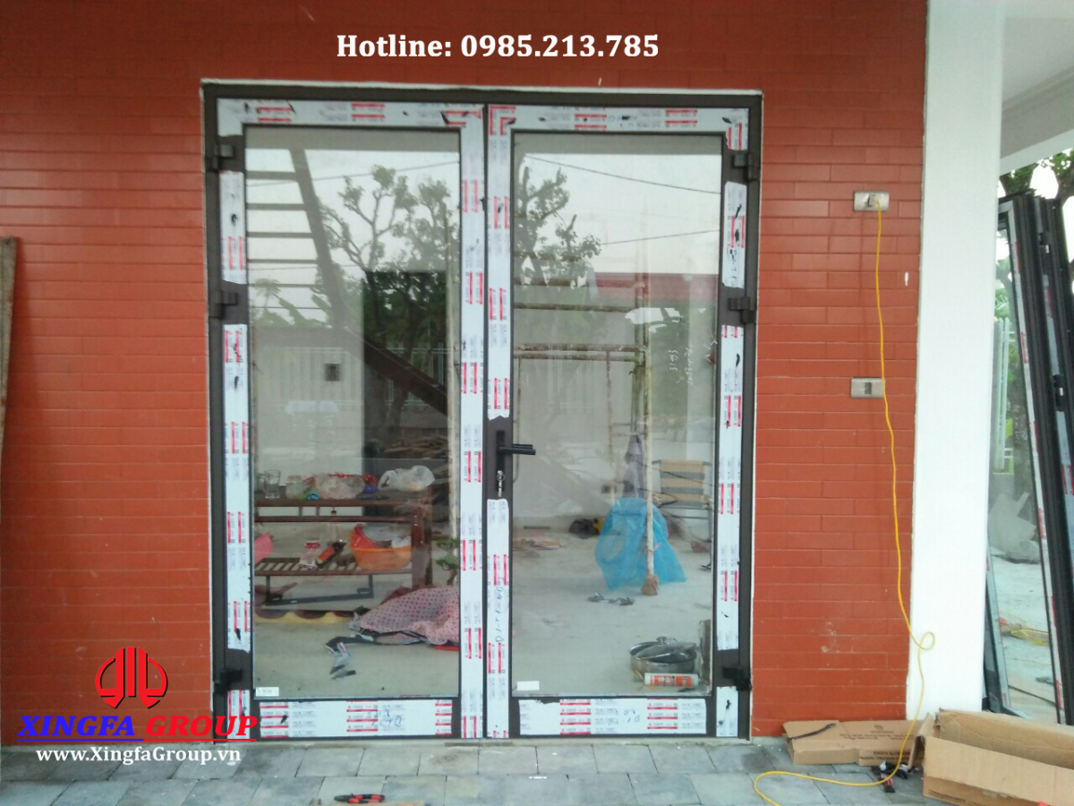 Mẫu cửa đi mở quay 2 cái nhôm Xingfa nhập khẩu chính hãng 100% tại công trình biệt thự ở Ninh Bình.