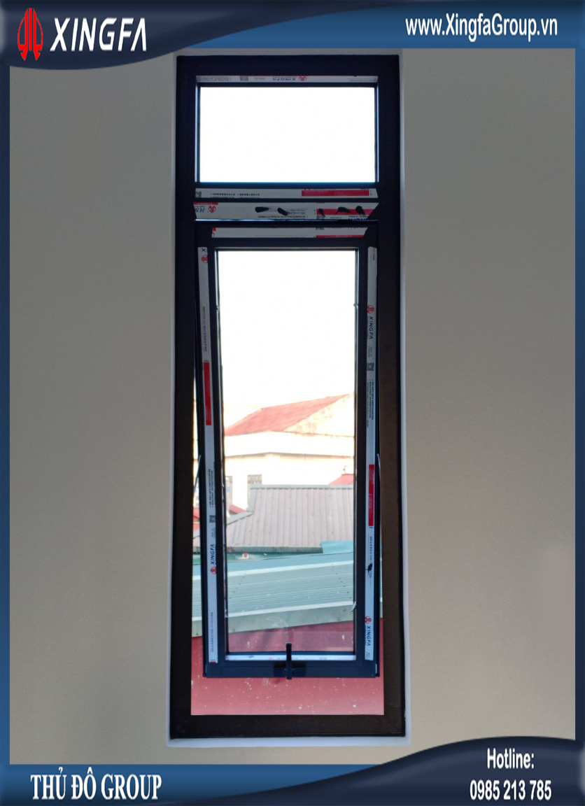 Hình ảnh một bộ cửa sổ mở hất 1 cánh nhôm Xingfa tem đỏ Quảng Đông