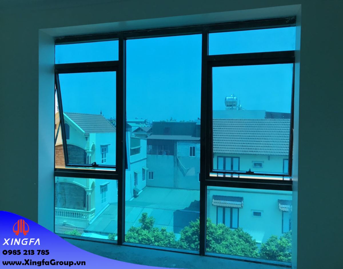 Hình ảnh cửa sổ mở hất nhôm Xingfa nhập khẩu kính mầu xanh
