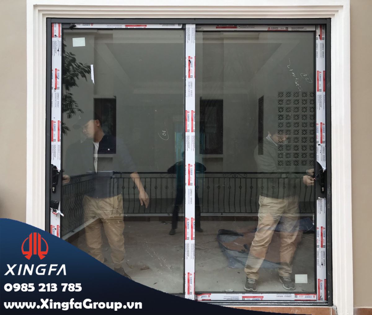 Hình ảnh cửa đi mở trượt sản xuất từ nhôm Xingfa nhập khẩu hệ 93 bản to