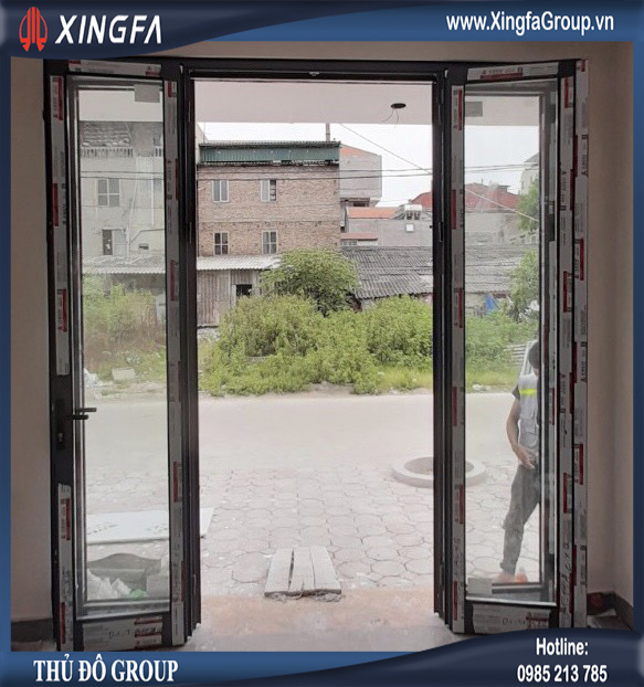 Hình ảnh cửa đi mở quay 4 cánh nhôm Xingfa cửa chính ra vào