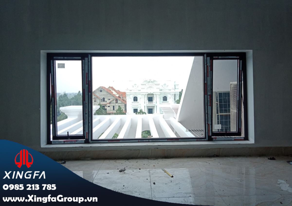 Hình ảnh cửa sổ nhôm Xingfa mở hất 1 cánh lắp đặt cùng vách kính cố định