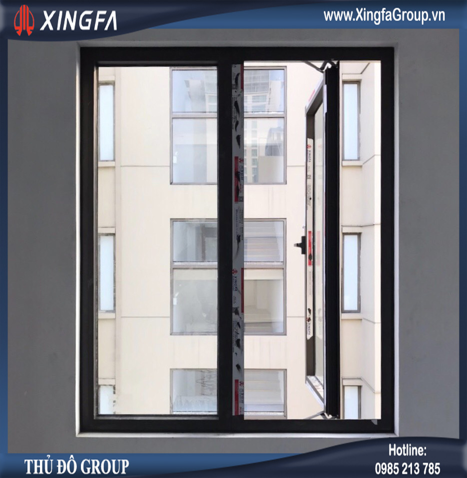 Cửa sổ mở quay 2 cánh nhôm Xingfa kết hợp vách kính cố định