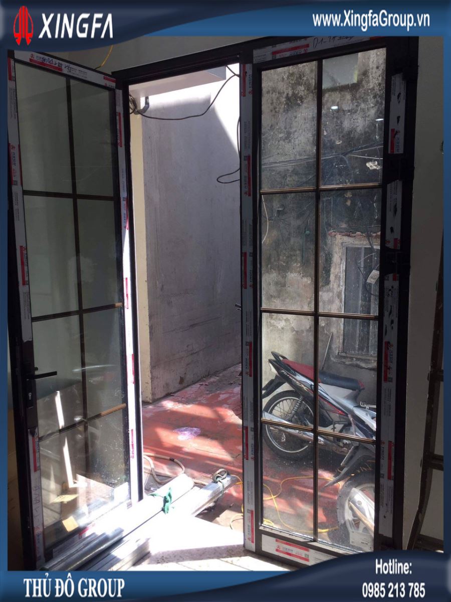 Hình ảnh cửa đi mở quay 2 cánh nhôm Xingfa chính hãng 100%