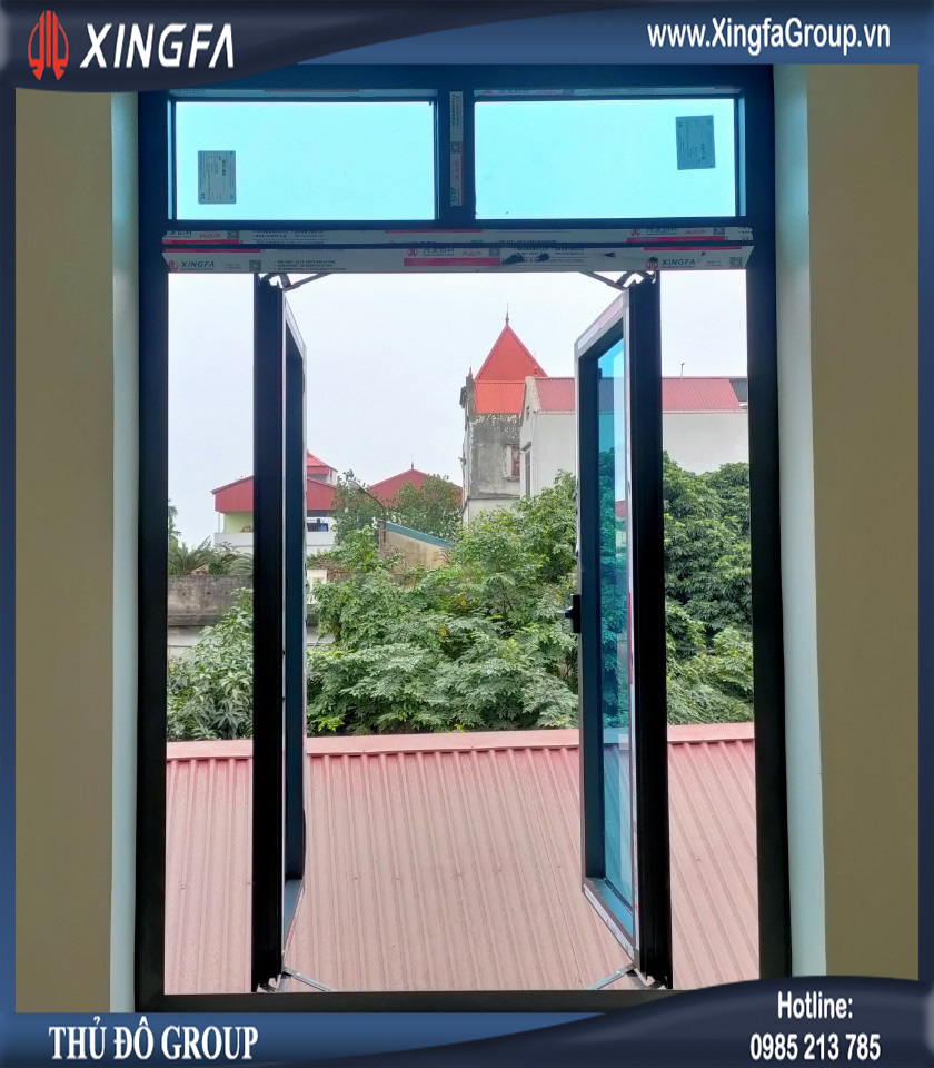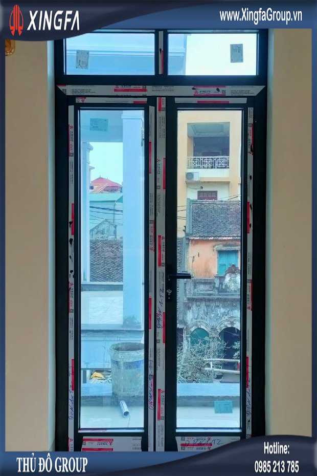 Hình ảnh bộ cửa nhôm Xingfa mở quay 2 cánh tem đỏ Quảng Đông