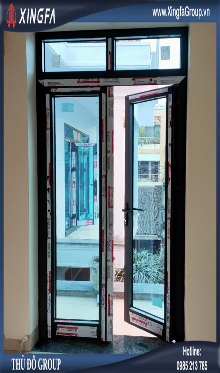 Hình ảnh cửa ra vào hệ mở quay 2 cánh nhôm Xingfa chính hãng