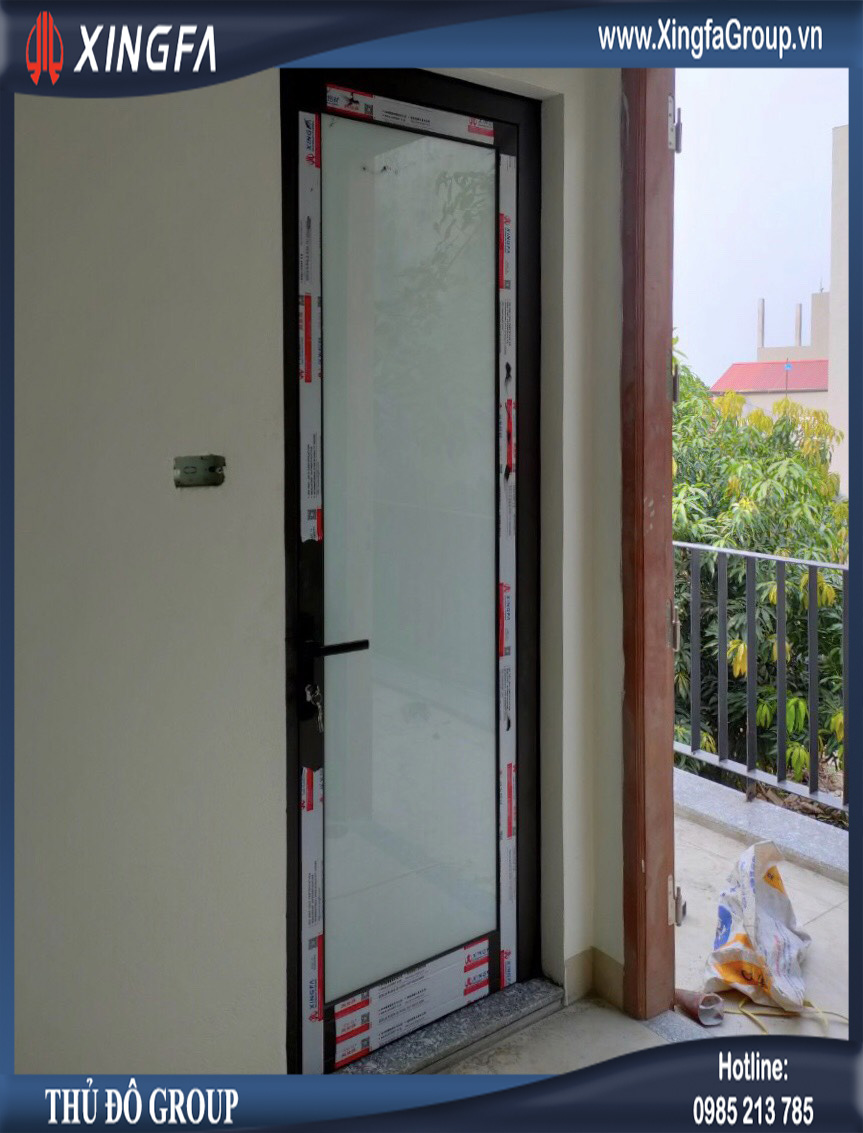 Hình ảnh cửa đi mở quay 1 cánh nhôm Xingfa chính hãng 100%