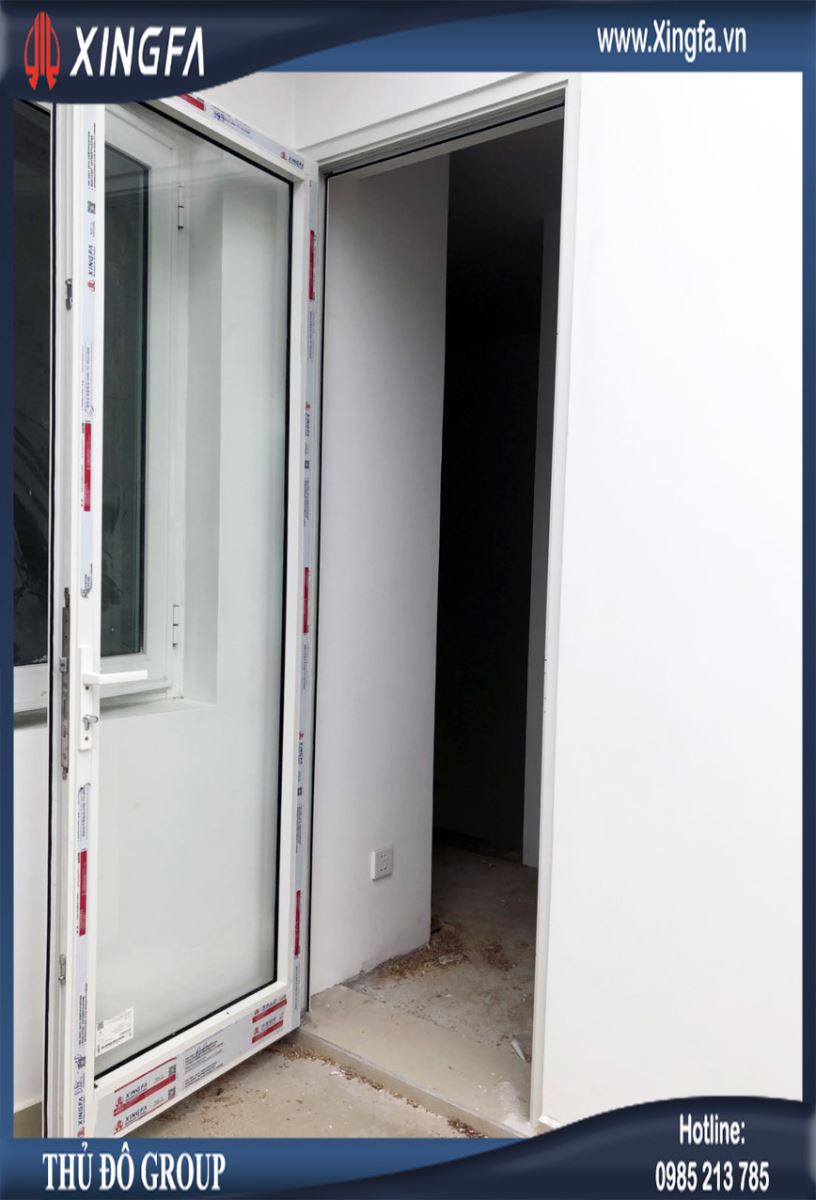 Hình ảnh cửa đi mở quay 1 cánh Xingfa mới lắp đặt tại công trình