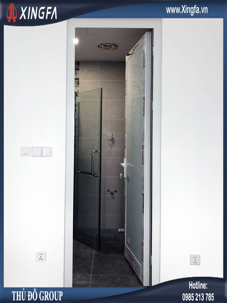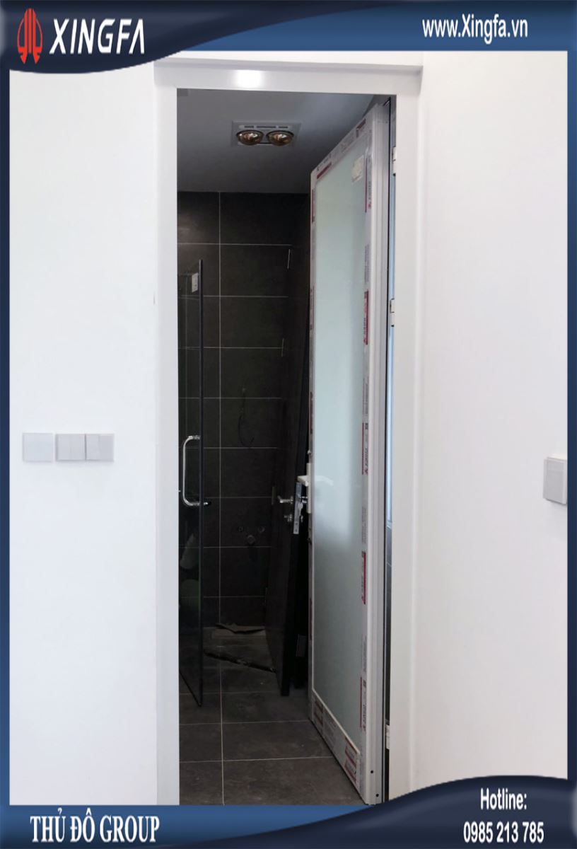 Hình ảnh cửa đi mở quay 1 cánh nhôm Xingfa phòng tắm, nhà vệ sinh