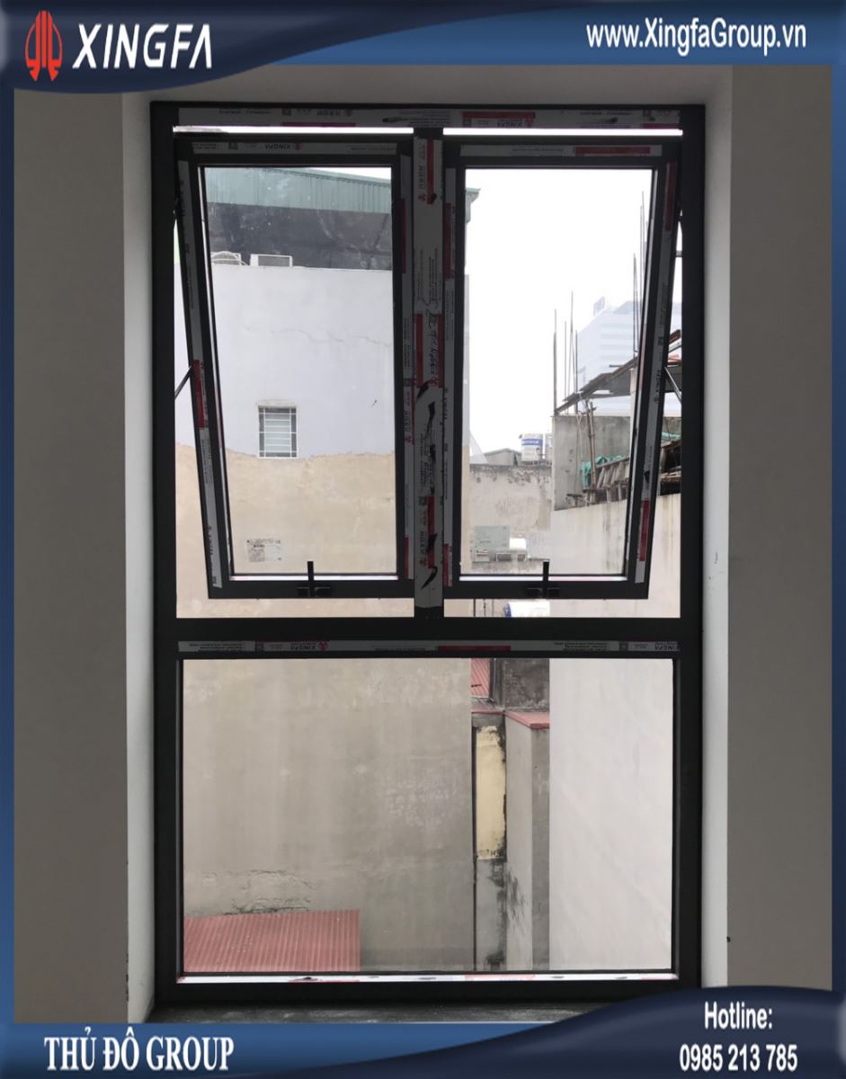 Hình ảnh mẫu cửa sổ mở hất 2 cánh nhôm Xingfa hệ 55 có độ dầy 1.4mm