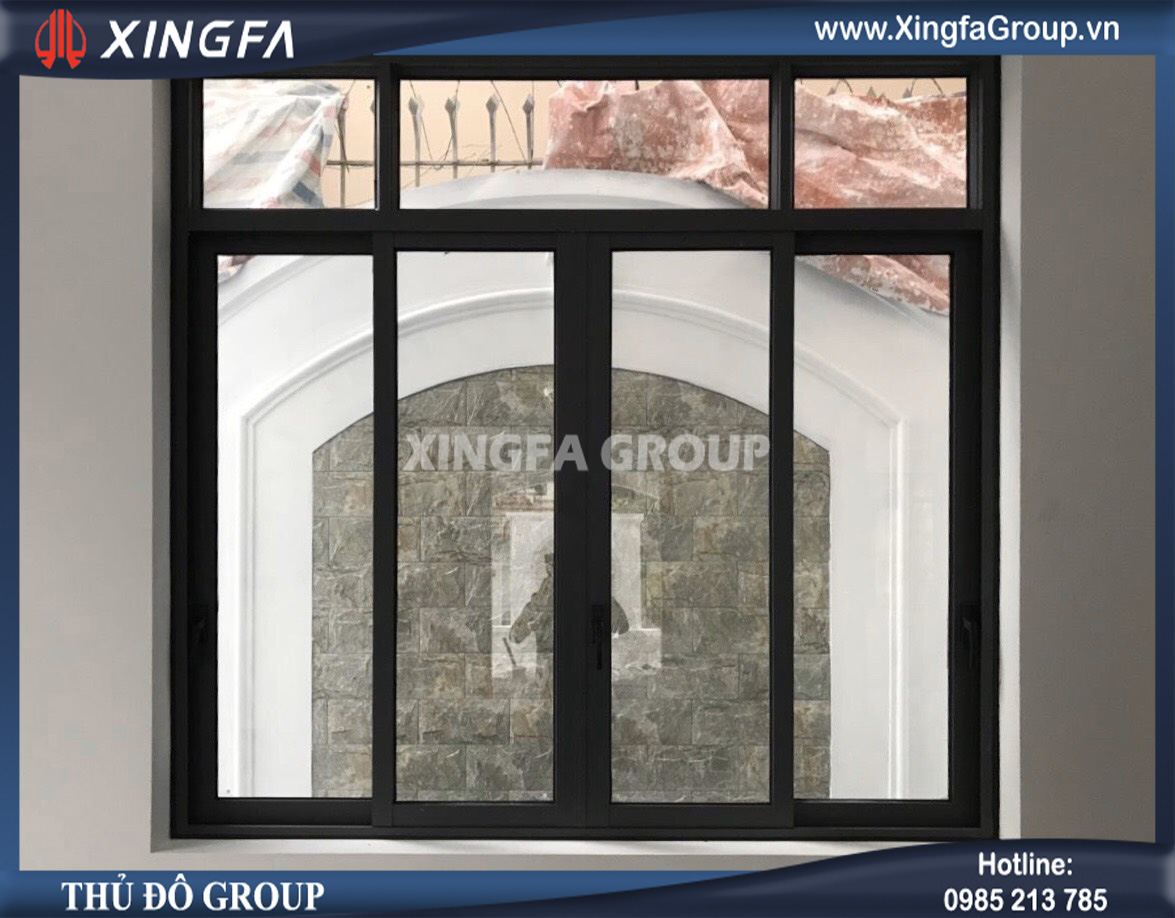 Hình ảnh cửa sổ mở trượt 2 cánh nhôm Xingfa + vách kính nhôm Xingfa