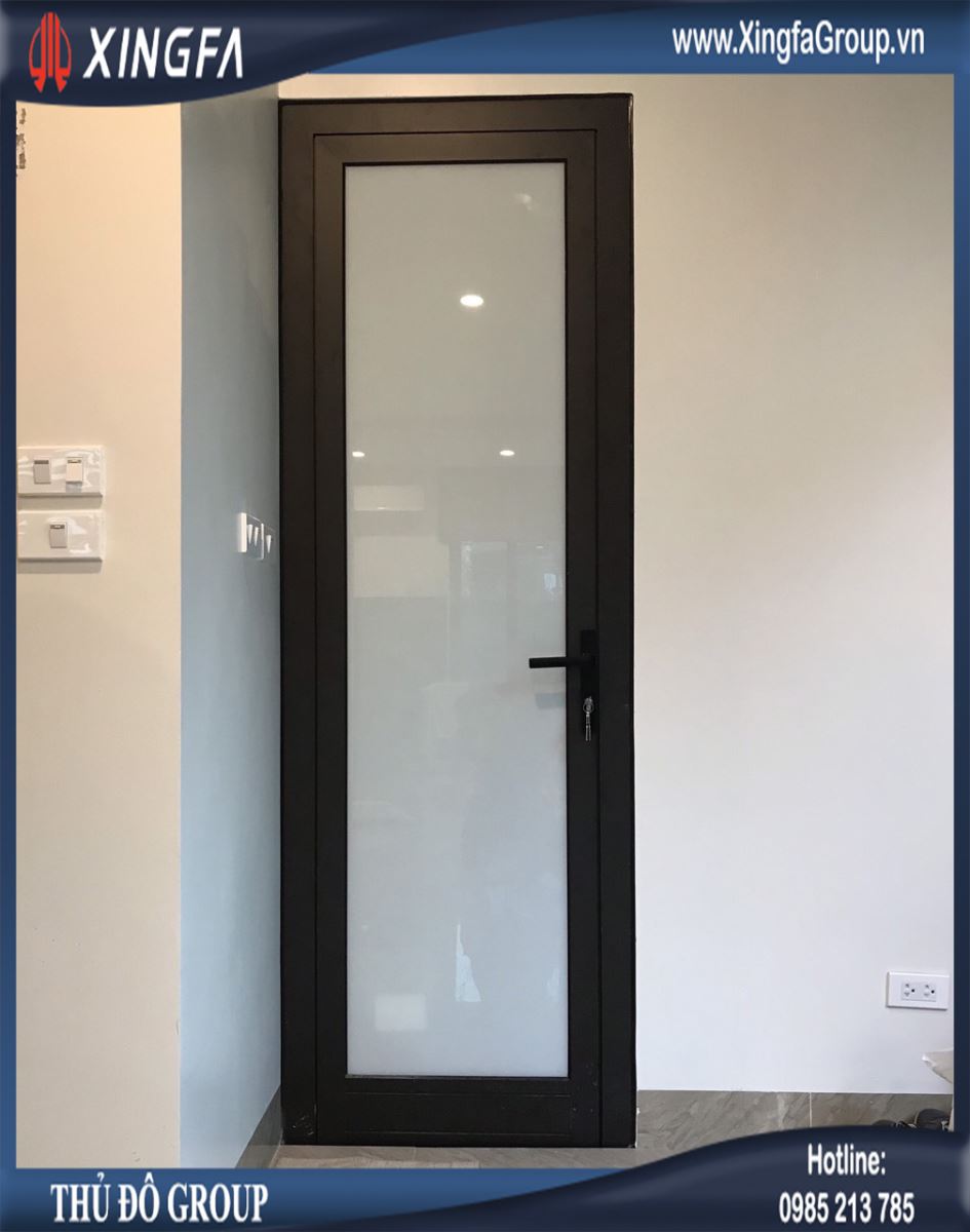 Hình ảnh cửa đi mở quay 1 cánh nhôm Xingfa + kính mầu trắng sữa