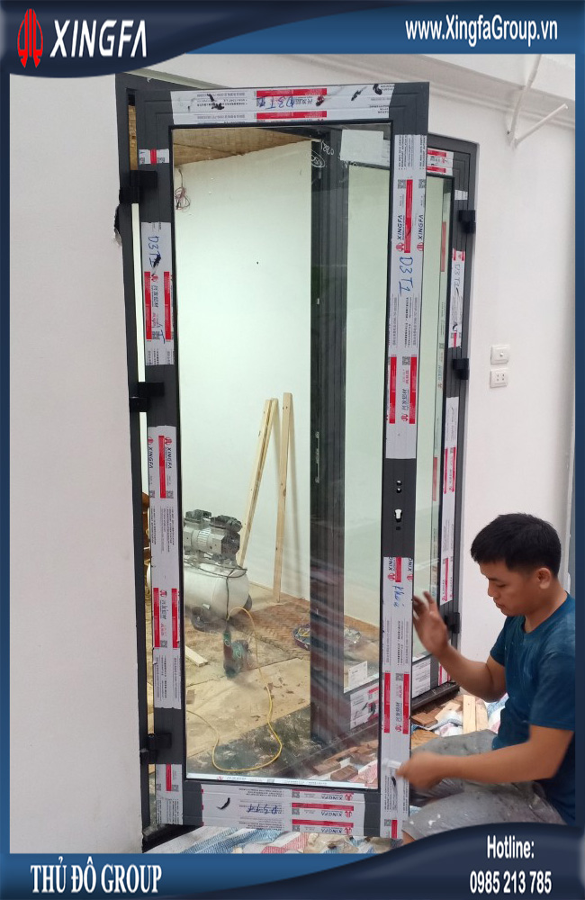 Hình ảnh cửa đi mở quay 2 cánh sản xuất từ nhôm Xingfa hệ 55
