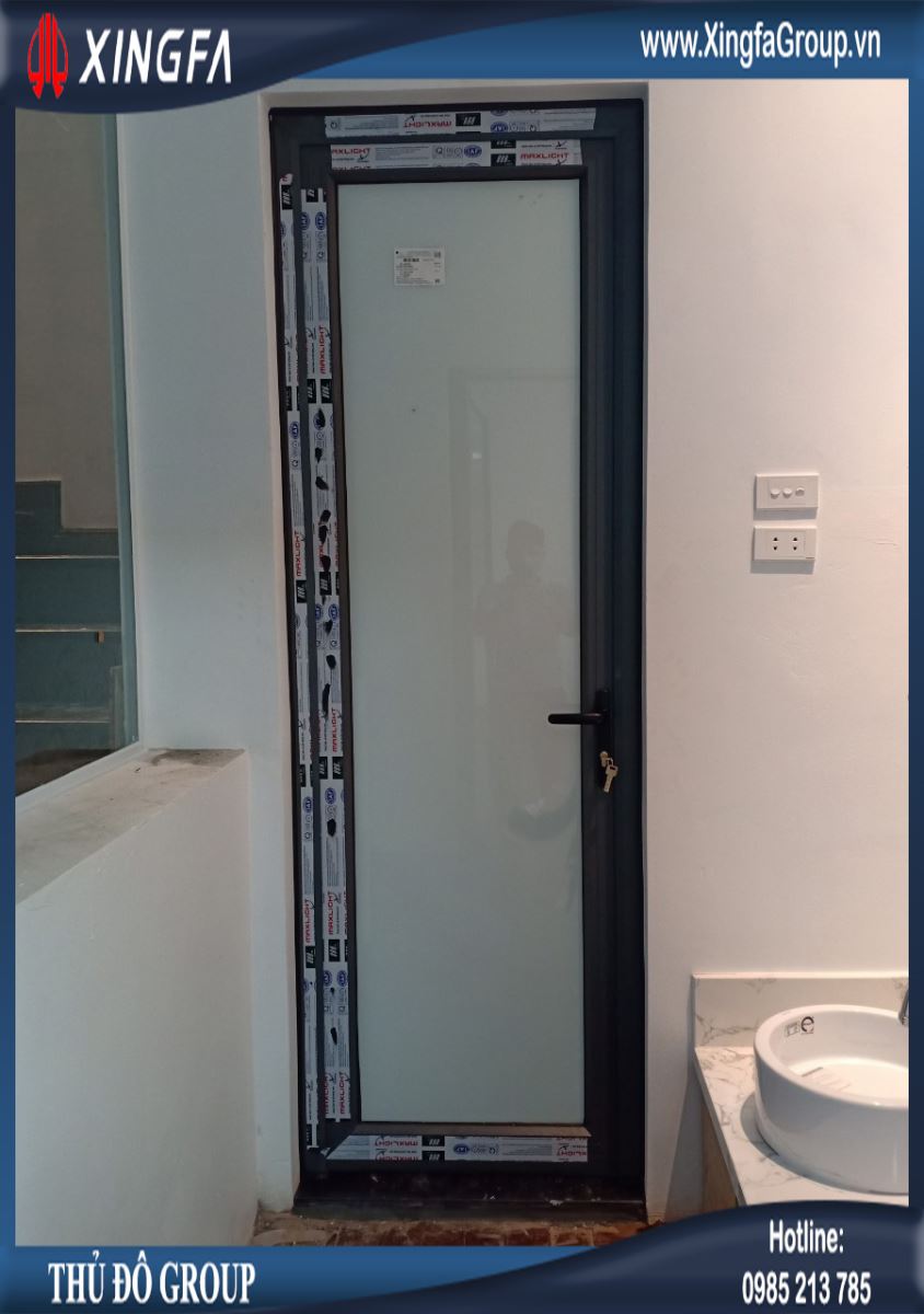 Hình ảnh cửa nhà vệ sinh là cửa đi mở quay 1 cánh nhôm Maxlight