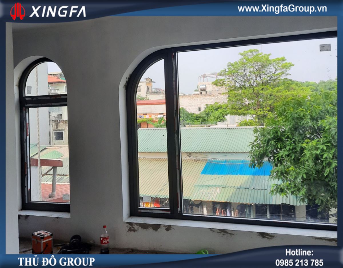 Cửa nhôm Xingfa mở quay kết hợp với vách kính cố định được uốn cong là sản phẩm nổi bật tại đây. Những đường cong, mái uốn vòm được sản xuất một cách tỉ mỉ, chính xác đã mang đến vẻ đẹp cổ điển cho các bộ cửa nhôm Xingfa. Để có thể làm nên những sản phẩm phức tạp như vậy cần có tay nghề kỹ thuật cao, cùng với công nghệ sản xuất, máy móc hiện đại. Và Thủ Đô Group hoàn toàn có thể làm được điều này.