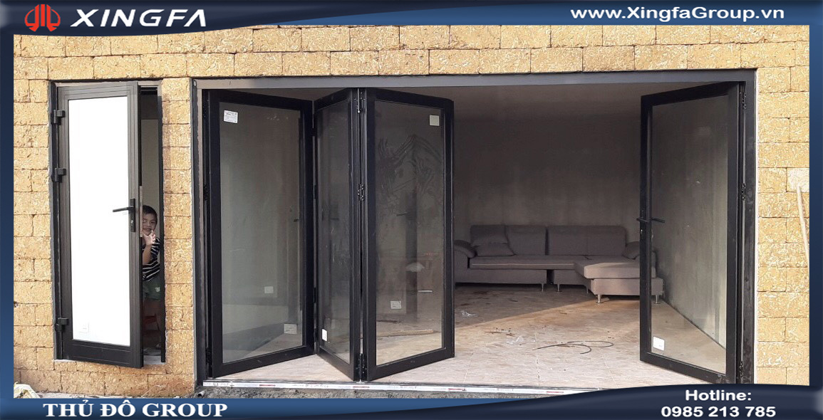 Hình ảnh cửa đi mở xếp trượt gấp nhôm Xingfa chính hãng 100%