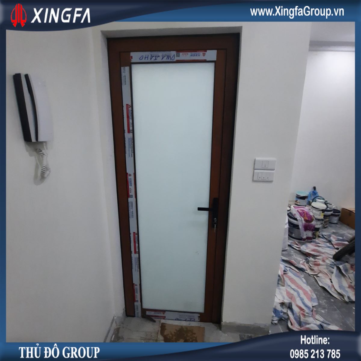 Hình ảnh bộ cửa đi mở quay 1 cánh nhôm Xingfa lắp kính trắng sữa