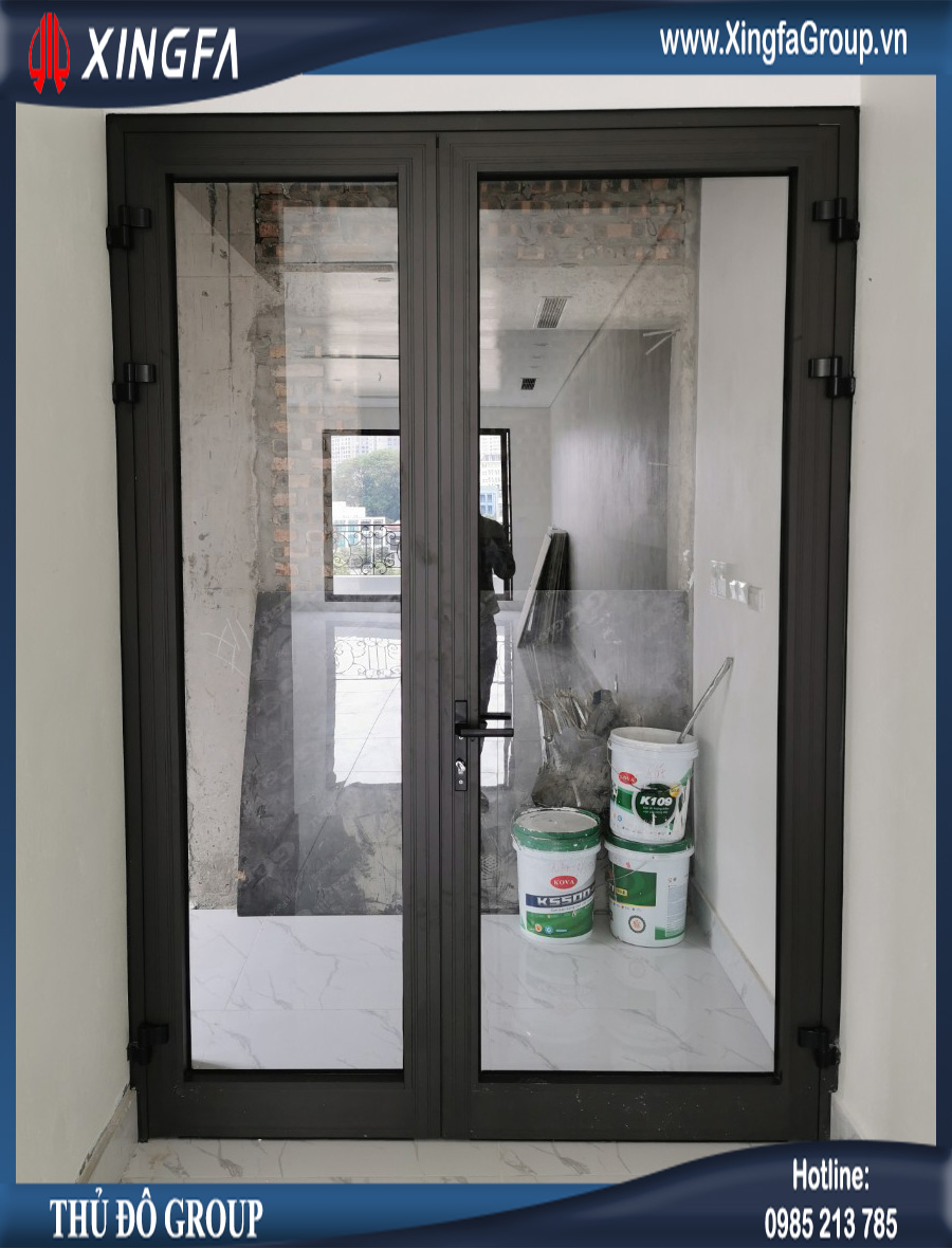Hình ảnh mẫu cửa đi mở quay 2 cánh nhôm Xingfa tem đỏ Quảng Đông