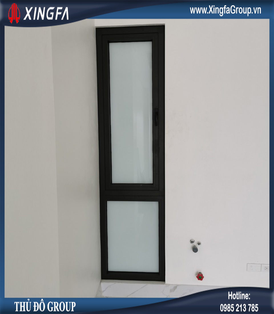 Hình ảnh cửa sổ mở quay 1 cánh nhôm Xingfa với kính mầu trắng sữa