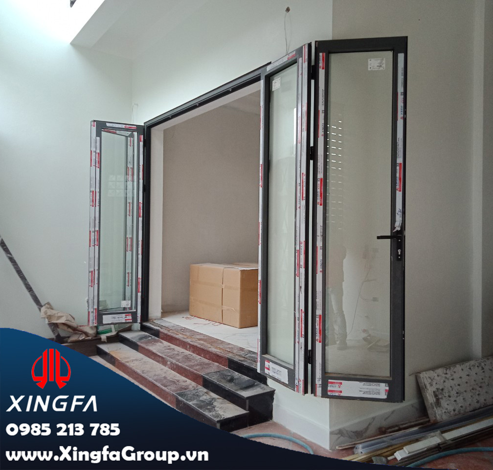 Hình ảnh cửa đi mở quay 4 cánh nhôm Xingfa nhập khẩu chính hãng